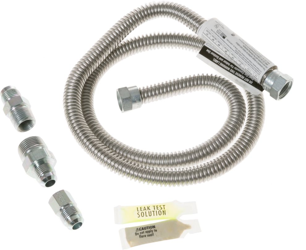 Safely and easily install any gas dryer with a user-friendly kit that includes all the parts you need. Includes 48" stainless steel gas connector, 3 fittings, pipe thread sealant and leak test solution.Read More