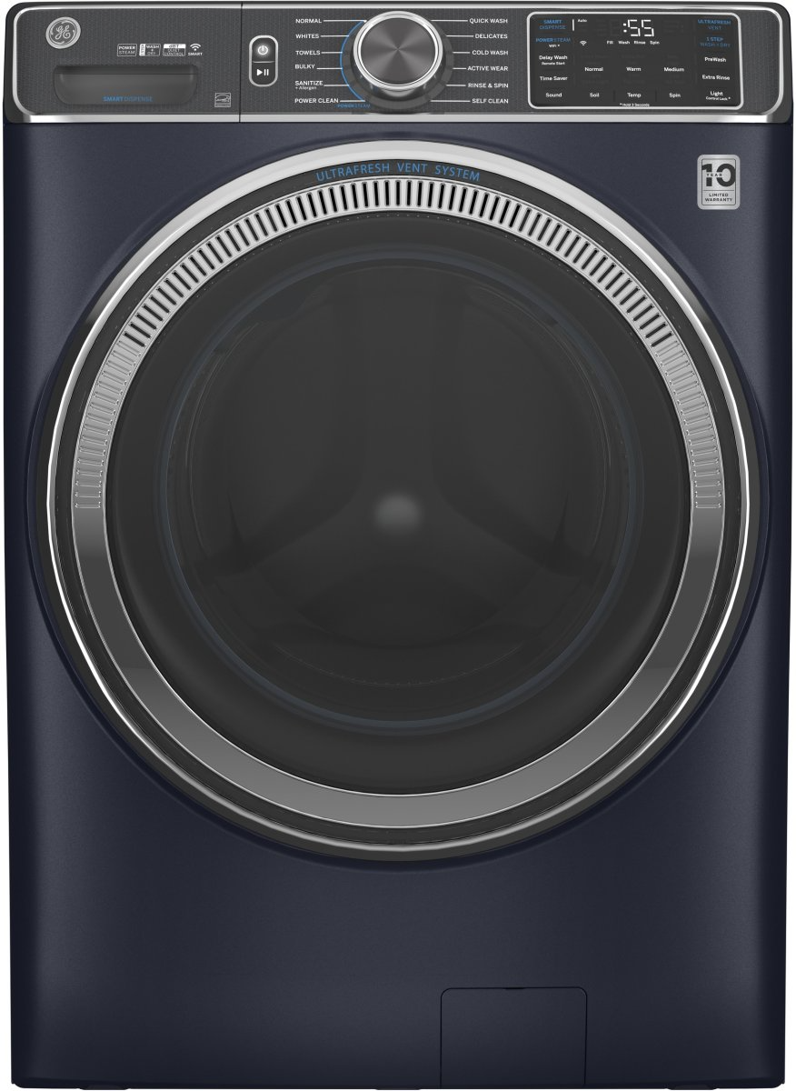 **CLEARANCE FLOOR MODEL; CURRENTLY STACKED BELOW DRYER & ONLY SOLD AS PAIR** Sanitize soiled linens or towels in this front-load GE washer. A capacity of 5.0 cu. ft. lets you clean a few days' worth of clothing in one load. Personalize each wash cycle with the digital controls on this GE washer.Read More