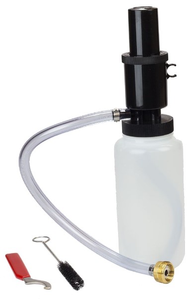 The Tap Cleaning Kit includes cleaning solution, pump mixing bottle, brush and wrench. Keeps the beer dispenser on kegerator clean. Use spanner wrench provided in the Tap Cleaning Kit to remove the faucet, along with the brush to scrub stuck-on grime.Read More