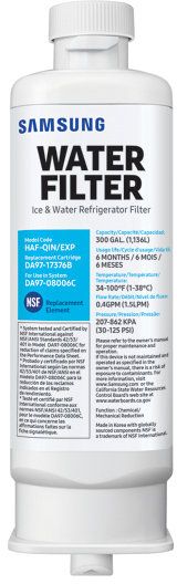 Purchase only Samsung Genuine water filters for authenticity and guaranteed performance. Be careful with other brands or imitations that display a cheaper price and are claiming compatibility with Samsung filters. Only Samsung Genuine filters have our guarantee of quality to deliver water filtration at our specifications.