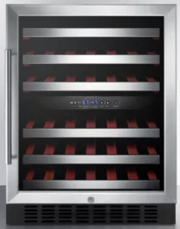 Slide-out wooden shelves with stainless steel trim let you store up to 46 standard 750ml sized Bordeaux bottles. Alternatively, you can store up to 40 bottles of the wider Pinot Noir or Chardonnay bottles, while still fitting an additional six Bordeaux bottles. Full automatic defrost, interior lighting, and SUMMIT's own "hidden" evaporator help to keep use and maintenance simple.