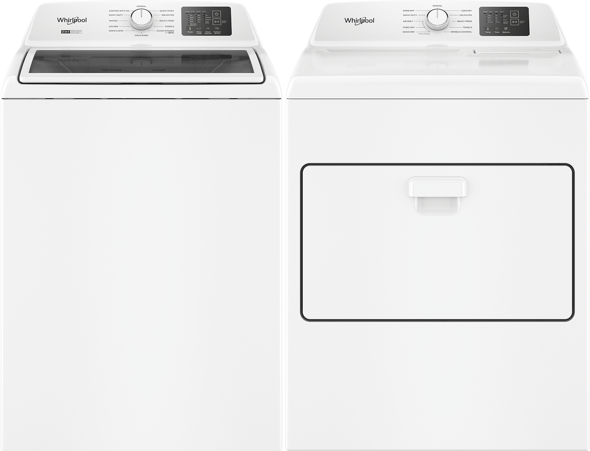 Whirlpool® White Laundry Pair with a 4.2 cu. ft. capacity top load washer and a 7 cu. ft. capacity gas dryer.Read More